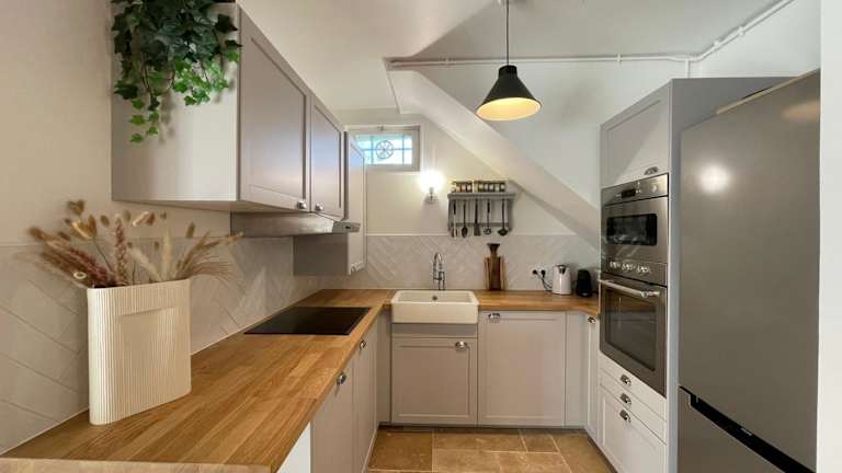 Die gut ausgestattete Küche der Villa umfasst einen Kühlschrank und einen Geschirrspüler. Gäste haben die Möglichkeit, einen Grill zu nutzen.