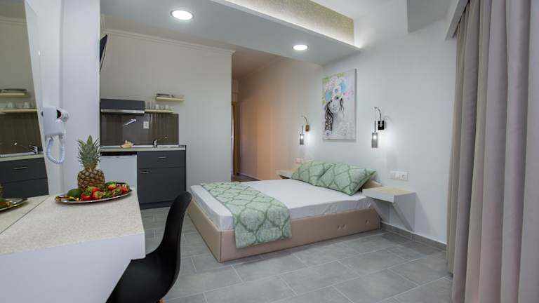 Die klimatisierten Hotelzimmer in der Villa Oasis sind gemütlich eingerichtet und verfügen über einen Kleiderschrank, einen Flachbild-TV und ein eigenes Badezimmer. Bettwäsche und Handtücher werden gestellt. Einige Zimmer bieten einen schönen Blick auf das Meer und alle Zimmer verfügen über eine Terrasse oder einen Balkon. Ein Kühlschrank steht ebenfalls zur Verfügung.