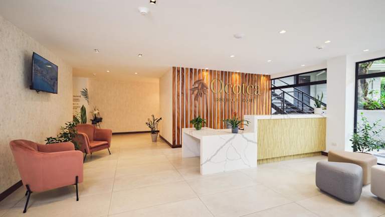 Das Ocotea Boutique Hotel in Monteverde, Costa Rica, bietet seinen Gästen eine wunderschöne Unterkunft mit Blick auf die Berge. Hier können Sie in gemütlichen Zimmern entspannen und den atemberaubenden Ausblick genießen. Das Hotel verfügt über eine Bar, einen Garten und kostenfreies WLAN. Jede Wohneinheit ist komfortabel eingerichtet und verfügt über eine gut ausgestattete Küche, ein eigenes Bad und einen Sitzbereich. Im hoteleigenen Restaurant können Sie ein köstliches À-la-carte-Frühstück und Abendessen genießen. Das Hotel bietet auch eine Terrasse oder einen Balkon, auf denen Sie die herrliche Natur um sich herum bewundern können. In der Umgebung gibt es viele Aktivitäten, wie zum Beispiel den Abenteuerpark Selvatura und Sky Adventures Monteverde, die nur wenige Kilometer entfernt sind. Der Flughafen Tambor ist 68 km entfernt, aber das Hotel bietet auch einen praktischen Transferservice an.
