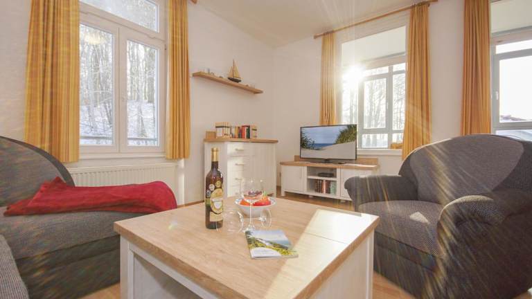 Die Ferienwohnung Sonnenseite befindet sich im Ostseebad Sellin, nur 400 m vom Hundestrand und 500 m vom Strand entfernt. Die Umgebung ist geeignet für Fahrradfahrer und bietet Zugang zu weiteren Stränden, darunter der Selliner Südstrand, der 1,3 km entfernt liegt.