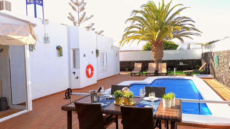 Die Villa Oliveira in Puerto del Carmen ist die perfekte Unterkunft für einen entspannten Urlaub auf Lanzarote. Genießen Sie den Komfort der klimatisierten Unterkünfte mit kostenfreiem WLAN und entspannen Sie im Außenpool oder im Garten. Die Villa verfügt über alle Annehmlichkeiten, die Sie für einen angenehmen Aufenthalt benötigen, einschließlich einer voll ausgestatteten Küche und einem eigenen Pool. Nutzen Sie auch den Fahrradverleih, um die Umgebung zu erkunden. Die zentrale Lage ermöglicht es Ihnen, die Sehenswürdigkeiten von Puerto del Carmen und die wunderschönen Strände in der Nähe zu erkunden.