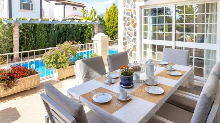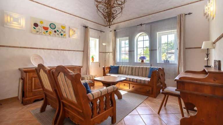Die Villa verfügt über vier separate Schlafzimmer, zwei Badezimmer sowie eine voll ausgestattete Küche mit Kühlschrank und Geschirrspüler. Handtücher und Bettwäsche sind ebenfalls vorhanden.