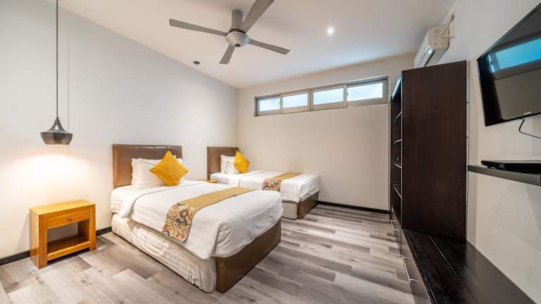 Die Villa Onyx liegt nur 1,2 km vom Petitenget Strand entfernt und bietet eine ruhige und entspannte Atmosphäre. In der Nähe finden Sie auch den Seminyak Strand, den Double Six Strand und den Petitenget Tempel. Der internationale Flughafen Denpasar ist nur 10 km entfernt, so dass Sie bequem an- und abreisen können.
