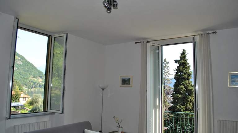 Das Apartment in der Villa Ortensia bietet einen komfortablen Rückzugsort mit einem Schlafzimmer, einer voll ausgestatteten Küchenzeile und einem gemütlichen Sitzbereich. Genießen Sie den Seeblick vom Balkon aus und fühlen Sie sich wie zu Hause in dieser charmanten Unterkunft.
