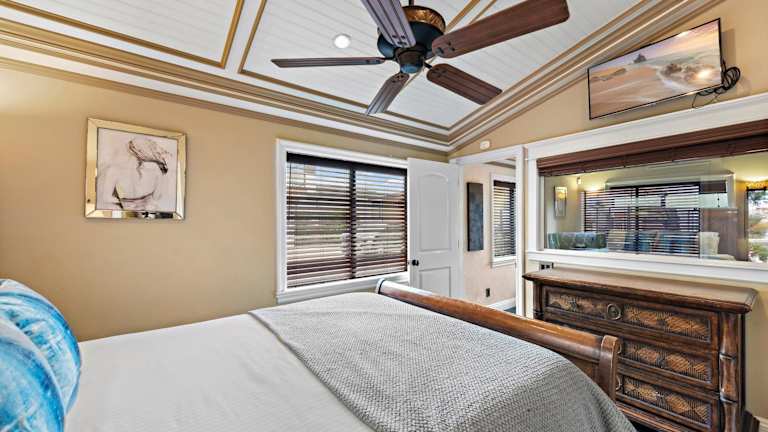 Die klimatisierte Villa hat ein Schlafzimmer und ist ausgestattet mit Kabel-TV, einem Essbereich sowie einer Küche, die einen Kühlschrank und einen Geschirrspüler umfasst. Ein Balkon ist ebenfalls vorhanden.