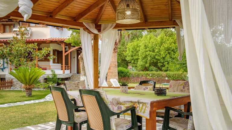 Die VILLA PALMERA in Ierissos ist eine ideale Unterkunft für Ihren Urlaub. Mit kostenfreien Fahrrädern, einem Garten, einer Terrasse und kostenfreiem WLAN bietet sie Ihnen alle Annehmlichkeiten, die Sie benötigen. Genießen Sie den atemberaubenden Meerblick und entspannen Sie auf dem Balkon. Das klimatisierte Ferienhaus verfügt über 3 Schlafzimmer, ein Wohnzimmer und eine voll ausgestattete Küche. Handtücher und Bettwäsche werden gestellt. Nutzen Sie auch den Grill, um Ihre Lieblingsgerichte zuzubereiten. Der Strand Gavriadia ist nur 2,5 km entfernt und der Flughafen Thessaloniki erreichen Sie nach 97 km.