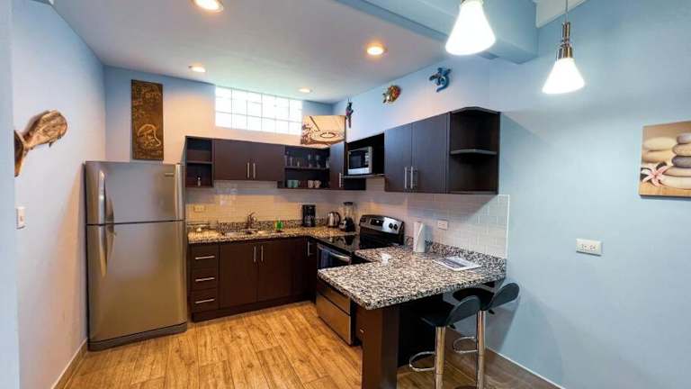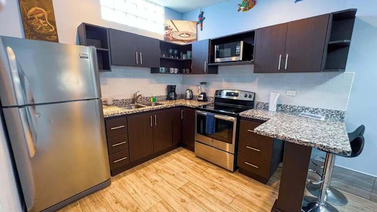 Die Unterkunft befindet sich in La Herradura, 200 m vom Strand Playa Jacó entfernt. In der Umgebung liegen der Themenpark Rainforest Adventures Jaco in 5,3 km Entfernung, sowie der Wasserfall Bijagual (25 km) und die Gartenanlage und Wasserfälle Pura Vida (26 km). Der nächste Flughafen, La Managua, ist 69 km entfernt.