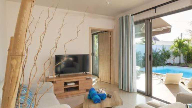Erleben Sie einen luxuriösen Aufenthalt im 3-Schlafzimmer-Bungalow mit eigenem Pool Grand Bay in Grand Baie. Genießen Sie den Außenpool, die Terrasse und den kostenfreien WLAN-Zugang. Die Villa bietet Ihnen einen privaten Pool, einen Garten und kostenfreie Parkplätze. Die klimatisierte Villa verfügt über 3 Schlafzimmer, einen Flachbild-Kabel-TV und eine voll ausgestattete Küche. Handtücher und Bettwäsche werden gestellt. Sie haben auch die Möglichkeit, ein Auto in der Villa zu mieten. Der Strand Pereybere ist nur 2,4 km entfernt und der Strand Hibiscus erreichen Sie nach 2,6 km. Der Flughafen Mauritius ist ca. 68 km entfernt.