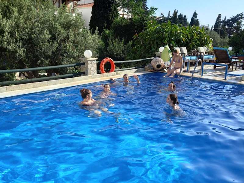Die Villa Rena bietet kostenloses WLAN, einen saisonalen Außenpool, einen Garten und eine Gemeinschaftslounge. Die Anlage umfasst eine Terrasse und einen Kinderspielplatz. Ein Check-in ist ab 13:30 Uhr bis zu 00:00 Uhr möglich, während der Check-out zwischen 10:00 Uhr und 12:00 Uhr erfolgt. Die Unterkunft ist tierfrei und bietet Nichtraucherzimmer sowie Familienzimmer an. Der Pool ist von Juni bis Ende September geöffnet.