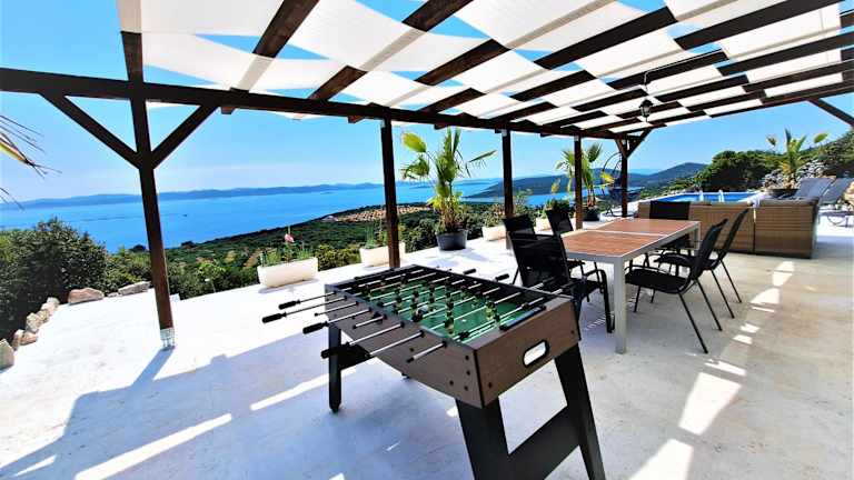 Die Villa Robinson in Tkon ist der perfekte Ort für einen entspannten Urlaub. Mit einem Außenpool, einem Garten und einer Terrasse, die einen atemberaubenden Meerblick bietet, können Sie hier die Ruhe und Schönheit der Umgebung genießen. Das kostenfreie WLAN und die Privatparkplätze sind weitere Annehmlichkeiten, die Ihren Aufenthalt angenehm gestalten. Das freundliche und mehrsprachige Personal ist rund um die Uhr für Sie da und steht Ihnen gerne zur Verfügung. Nutzen Sie die Gelegenheit, die Umgebung zu erkunden und Aktivitäten wie Wandern, Windsurfen und Tauchen nachzugehen. Die Villa Robinson bietet auch einen Fahrradverleih und einen eigenen Strandbereich, damit Sie Ihren Urlaub in vollen Zügen genießen können.