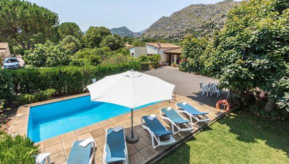 Die Villa Rosa ist eine charmante Unterkunft im traditionellen mallorquinischen Stil, nur 2,5 km von Pollensa entfernt. Hier können Sie einen erholsamen Urlaub inmitten eines gepflegten Gartens mit eigenem Pool genießen. Das Ferienhaus verfügt zudem über eine überdachte Außenterrasse mit Grillmöglichkeiten. Die Unterkunft bietet Platz für bis zu 8 Personen und verfügt über 3 Schlafzimmer mit Einzelbetten und 1 Schlafzimmer mit einem Doppelbett. Das geräumige Wohnzimmer mit Holzbalkendecke und Keramikfliesenboden ist mit Sat-TV ausgestattet. In der gut ausgestatteten separaten Küche finden Sie einen elektrischen Backofen, ein Cerankochfeld und eine Waschmaschine. Genießen Sie den Blick auf die Berge von der Terrasse der Villa Rosa. Die Strände von Cala San Vicente und die Bucht von Pollensa sind nur 6,5 km entfernt, ebenso wie die belebte Stadt Puerto de Pollensa. Der Flughafen Palma de Mallorca ist 65 km entfernt.