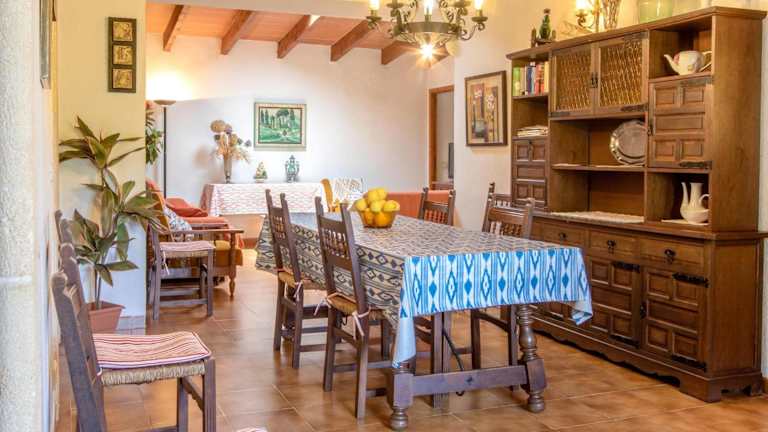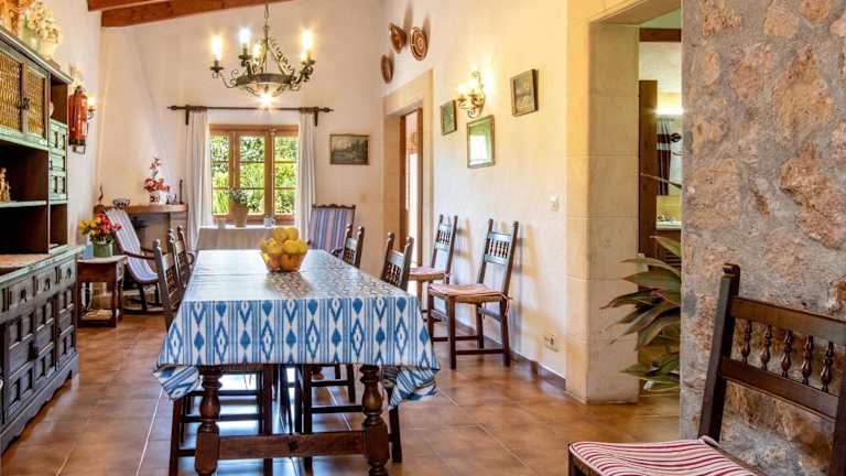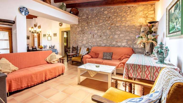 Die Villa Rosa bietet Platz für bis zu 8 Personen und verfügt über 3 Schlafzimmer mit Einzelbetten und 1 Schlafzimmer mit einem Doppelbett. Die Zimmer sind im traditionellen mallorquinischen Stil eingerichtet und bieten eine gemütliche Atmosphäre. Das geräumige Wohnzimmer verfügt über eine Holzbalkendecke und einen Keramikfliesenboden und ist mit Sat-TV ausgestattet, um Ihnen Unterhaltung zu bieten. Die gut ausgestattete Küche verfügt über einen elektrischen Backofen, ein Cerankochfeld und eine Waschmaschine.
