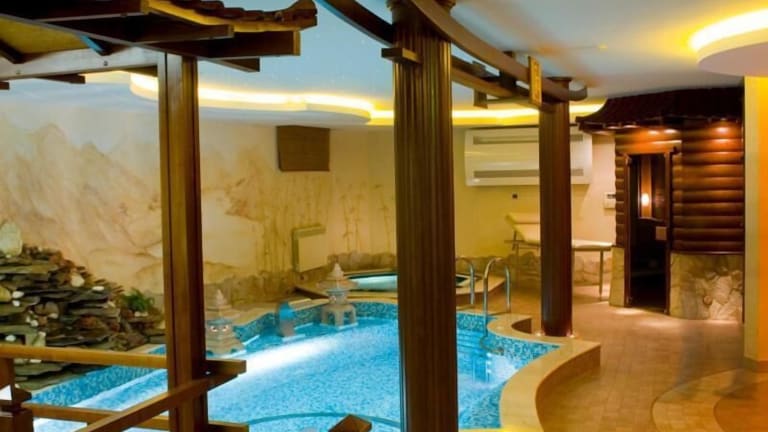 Das Hotel bietet sowohl Innen- als auch Außenpools, die sich für Aquatraining und aktive Erholung eignen. Zur Freizeitgestaltung stehen ein Spa, Sauna und Massage-Anwendungen zur Verfügung. Eine Terrasse lädt dazu ein, die Zeit im Freien zu genießen.