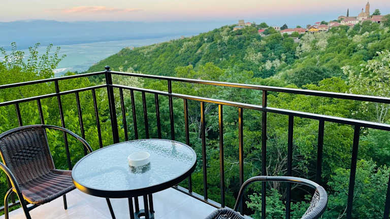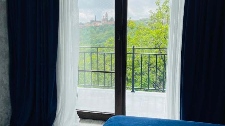 Das Hotel Villa Royal in Sighnaghi bietet Ihnen einen komfortablen Aufenthalt mit herrlichem Bergblick und kostenfreiem WLAN. Die klimatisierten Zimmer sind stilvoll eingerichtet und verfügen über eine Terrasse sowie ein eigenes Bad. Genießen Sie den Balkon mit Blick auf die Stadt und profitieren Sie von der Nähe zu Sehenswürdigkeiten wie dem Kloster Bodbe und dem Nationalmuseum Sighnaghi. Der internationale Flughafen Tiflis ist nur 98 km entfernt, und die Unterkunft bietet einen praktischen Flughafentransfer gegen Aufpreis.