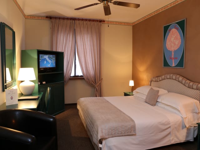 Die Zimmer im Hotel Villa San Carlo sind klassisch eingerichtet und verfügen über Teppichboden und Holzmöbel. Zur Ausstattung gehören ein Sat-TV, ein Wasserkocher und eine Minibar. Kostenfreies WLAN steht Ihnen in den öffentlichen Bereichen des Hotels zur Verfügung.