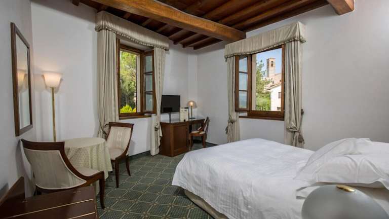 Das Hotel Villa San Lucchese in Poggibonsi bietet seinen Gästen einen erholsamen Aufenthalt in einem historischen Gebäude aus dem 15. Jahrhundert. Mit einem Pool, einem Tennisplatz und einem toskanischen Restaurant mit Panoramablick bietet das Hotel eine Vielzahl von Annehmlichkeiten. Die elegant eingerichteten Zimmer sind mit kostenfreiem WLAN, einer Minibar und einem TV mit Sat-Kanälen ausgestattet. Genießen Sie ein reichhaltiges Frühstücksbuffet mit hausgemachten Spezialitäten und Bio-Produkten. Das Hotel bietet auch die Möglichkeit, Fahrräder und Motorroller zu mieten und organisiert gerne Weinverkostungen in der Umgebung.