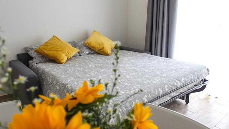 Die Ferienwohnung verfügt über klimatisierte Wohnräume, die aus einem Schlafzimmer, einem Wohnzimmer und einer voll ausgestatteten Küche bestehen. Die Küche ist mit einem Kühlschrank, einer Kaffeemaschine und einem Wasserkocher ausgestattet. Zusätzlich stehen den Gästen ein Badezimmer mit Bidet und Dusche, sowie Handtücher und Bettwäsche zur Verfügung.