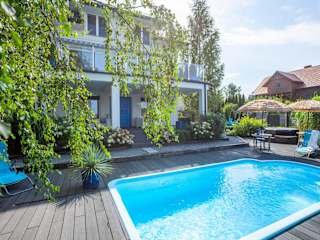 Die Villa Santorini in Konarzyny ist der perfekte Ort, um einen entspannten Urlaub inmitten der Natur zu verbringen. Mit einem saisonalen Außenpool, kostenlosem WLAN und einer Gemeinschaftsküche bietet die Villa alle Annehmlichkeiten, die Sie für einen angenehmen Aufenthalt benötigen. Die geräumigen Schlafzimmer, der private Pool und der Garten sorgen für eine luxuriöse und erholsame Atmosphäre. Die Lage in der Nähe des Ethnographischen Parks Kaszuby macht die Villa zum idealen Ausgangspunkt, um die kulturellen Schätze der Region zu erkunden.