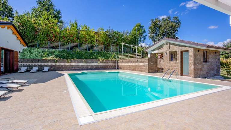 Die Villa Santoro ai TRE Ulivi con Piscina Privata bietet einen Außenpool, in dem Sie sich an warmen Tagen erfrischen können. Der Poolbereich ist von einer schönen Gartenanlage umgeben, die zum Entspannen und Sonnenbaden einlädt. Die Umgebung eignet sich auch ideal für Aktivitäten im Freien wie Wandern, Radfahren und Weinproben in den umliegenden Weinbergen.