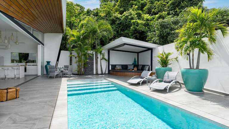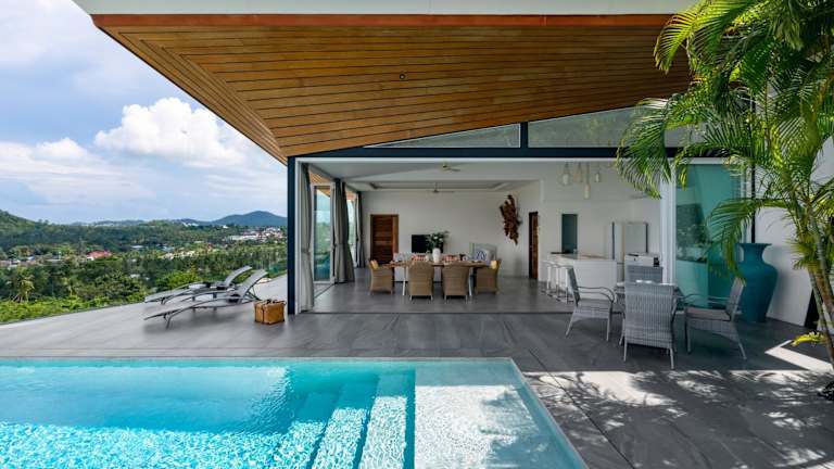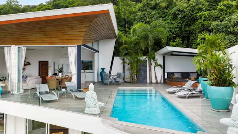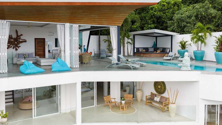 Die Villa beinhaltet eine voll ausgestattete Küche, einen Essbereich, einen Flachbild-TV sowie eine Terrasse mit Meerblick. Handtücher und Bettwäsche können gegen Aufpreis bereitgestellt werden. Weiterhin sind die Zimmer mit Klimaanlage und einem Safe ausgestattet.