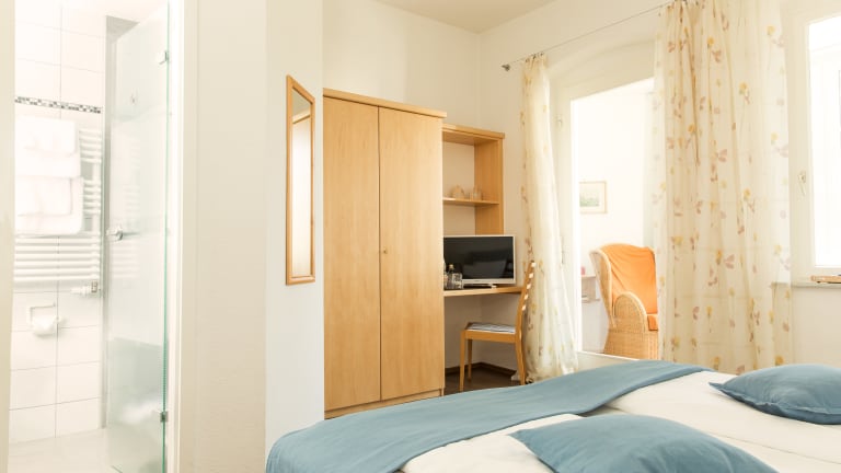 In unseren gemütlichen und individuell eingerichteten Wohlfühlzimmern verbringen Sie entspannte Urlaubstage (Einzelzimmer, Doppelzimmer, Zweibettzimmer, Suite). Neben einer gemütlichen Sitzecke, einer Tee- und Kaffee- Bar finden Sie auch einen gut beleuchteten Arbeitsplatz. Zur Basisausstattung gehört ein Radio und ein Flatscreen-TV in vernünftiger Größe. Unsere Badezimmer sind alle neu renoviert, mit Frankenwaldschiefer, hell und modern, die Gäste finden Haartrockner und Toilettenartikel vor.