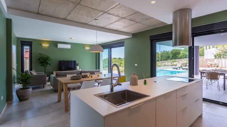 Die Villa Silente in Krk ist der perfekte Ort für einen entspannten Urlaub. Mit einem Außenpool, einem Garten und einer Terrasse können Sie die Sonne und die schöne Aussicht auf die Stadt genießen. Das kostenfreie WLAN und die kostenfreien Privatparkplätze machen Ihren Aufenthalt noch angenehmer. Die Villa bietet Platz für bis zu 6 Personen und verfügt über 3 Schlafzimmer, ein Wohnzimmer und eine voll ausgestattete Küche. Auch die 3 Badezimmer sind modern und mit kostenlosen Pflegeprodukten ausgestattet. Handtücher und Bettwäsche werden gestellt. Grillmöglichkeiten stehen Ihnen ebenfalls zur Verfügung. In der Umgebung gibt es viele Aktivitäten wie Wandern, Windsurfen, Angeln, Kanufahren und Radfahren. Besuchen Sie auch das nahegelegene Franziskanerkloster Kosljun und den Yachthafen Punat. Der Flughafen Rijeka ist nur 26 km entfernt und bietet einen kostenpflichtigen Flughafentransfer.