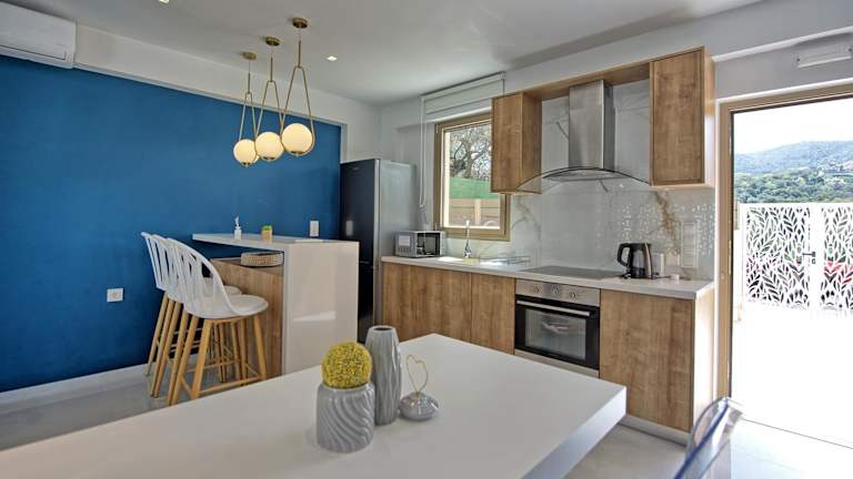 Die Villa Silentium Ionia by MediterraneanVillas bietet Ihnen eine komfortable Unterkunft mit 2 Schlafzimmern. Die Villa ist klimatisiert und verfügt über ein Wohnzimmer sowie eine voll ausgestattete Küche mit einem Kühlschrank und einer Kaffeemaschine. Es gibt auch 2 Badezimmer mit einer Dusche und einer Badewanne. Zur Unterhaltung steht Ihnen ein Flachbild-TV zur Verfügung.