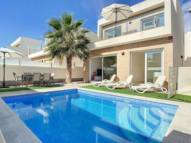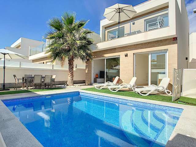 Die Villa Sol - San Pedro del Pinatar in San Pedro del Pinatar ist eine ideale Unterkunft für einen entspannten Urlaub. Mit einem Außenpool, einem schönen Garten und einer Terrasse bietet sie eine perfekte Umgebung, um die Sonne zu genießen. Das kostenfreie WLAN ermöglicht es Ihnen, mit Ihren Lieben in Verbindung zu bleiben, während Sie den atemberaubenden Poolblick genießen. Die klimatisierte Villa verfügt über 3 Schlafzimmer, ein gemütliches Wohnzimmer und eine voll ausgestattete Küche. Handtücher und Bettwäsche werden gestellt, damit Sie sich wie zu Hause fühlen. Ein besonderes Highlight ist der Whirlpool, der Ihnen zur Verfügung steht. In der Umgebung können Sie wunderbar Rad fahren und die Strände El Mojon und La Mota erreichen Sie in kurzer Entfernung. Der internationale Flughafen Murcia-Region ist nur 37 km entfernt.