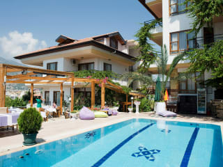 Die Villa Sonata verfügt über einen Außenpool, in dem Sie sich an warmen Tagen erfrischen können. Das Hotel bietet auch verschiedene Wellnesseinrichtungen wie ein Türkisches Bad, einen Whirlpool und eine Sauna, in denen Sie entspannen können. Für diejenigen, die gerne aktiv bleiben, gibt es auch einen Fitnessraum. Die Rezeption des Hotels ist rund um die Uhr besetzt und das Personal steht Ihnen gerne zur Verfügung.