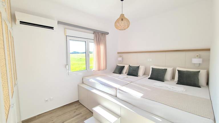 Die Villa Stamos liegt nur 350 Meter vom Strand entfernt und ist von üppiger Natur umgeben. In der Nähe befinden sich die Orte Prasonisi und Kattavia, die sowohl kulturelle als auch natürliche Attraktionen bieten. Der Flughafen Rhodos ist etwa 80 km entfernt und kann gegen Aufpreis mit einem Flughafentransfer erreicht werden.