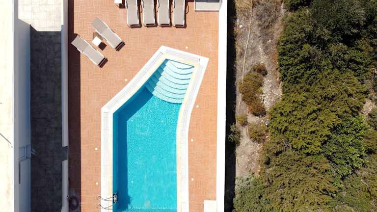 Der private Pool der Villa ist 40 qm groß und bietet Ihnen die Möglichkeit, sich im kühlen Wasser zu erfrischen und die Sonne zu genießen. Entspannen Sie auf den Sonnenliegen aus Holz und Aluminium oder nutzen Sie die wasserdichte Pergola und die Holzmöbel im Freien. Die umliegende Natur lädt zu Spaziergängen und Erkundungen ein.
