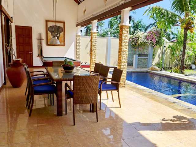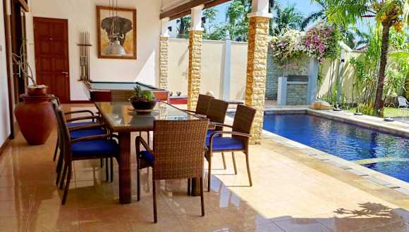 Die Villa Stella Garden ist eine wunderschöne freistehende Villa in der Region Senggigi auf der Insel Lombok. Mit ihrer abgeschiedenen Lage und dem großen Garten bietet sie den perfekten Ort für Entspannung und Erholung. Der große Pool und das Kinderbecken sorgen für Spaß und Abkühlung an heißen Tagen. Die Villa ist komplett ausgestattet und verfügt über ein gemütliches Wohnzimmer mit Sat-TV sowie eine moderne Küchenzeile. Kostenlose WLAN-Nutzung ist in der gesamten Unterkunft möglich. Ein besonderes Highlight ist die Terrasse, auf der Sie eine Runde Billard spielen können. Handtücher und Bettwäsche werden zur Verfügung gestellt und ein Babybett und ein Hochstuhl sind ebenfalls vorhanden. Der internationale Flughafen Lombok ist nur 37 km entfernt, so dass Sie Ihre Reise bequem fortsetzen können.
