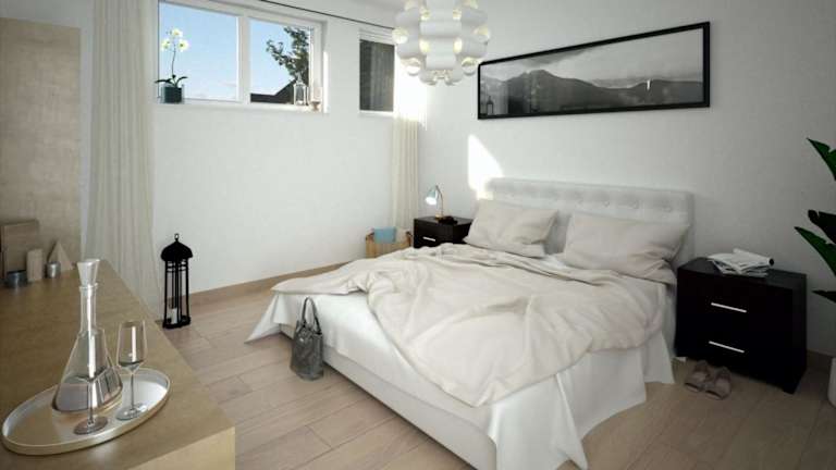 Die Ferienwohnung umfasst vier Schlafzimmer, ein Wohnzimmer, eine voll ausgestattete Küchenzeile mit Kühlschrank und Kaffeemaschine sowie vier Badezimmer, die jeweils mit einer Dusche und einem Haartrockner ausgestattet sind. Zur Unterhaltung steht ein Flachbild-TV zur Verfügung.