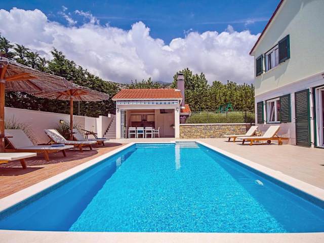 Die VILLA STOZAK bietet klimatisierte Unterkünfte mit Balkonen und kostenfreiem WLAN. Die Villa verfügt über einen eigenen beheizten Pool, einen Kinosaal und eine Sauna. Die Unterkunft bietet eine voll ausgestattete Küche mit Kühlschrank, Backofen und Geschirrspüler. Das geräumige Wohnzimmer ist mit einem bequemen Sitzbereich und einem Essbereich ausgestattet. Es gibt 4 Schlafzimmer und 4 Badezimmer mit Dusche und Badewanne. Handtücher und Bettwäsche werden gestellt.