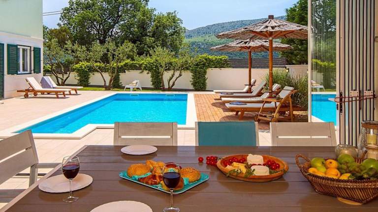 Erleben Sie einen luxuriösen Aufenthalt in der VILLA STOZAK in Tugare. Diese Villa bietet einen eigenen beheizten Pool, einen Kinosaal und eine Sauna. Die klimatisierten Unterkünfte verfügen über Balkone und kostenfreies WLAN. Genießen Sie den Komfort und die Privatsphäre dieser Villa, die über eine voll ausgestattete Küche, ein geräumiges Wohnzimmer, 4 Schlafzimmer und 4 Badezimmer verfügt. Entspannen Sie im Garten, dem Außenpool oder auf der Terrasse. Die Villa befindet sich in der Nähe von Sehenswürdigkeiten wie dem Diokletianpalast und dem Stadtmuseum Split.
