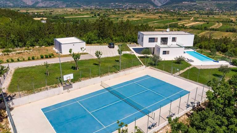Die Villa bietet zahlreiche Möglichkeiten für Sport und Freizeitaktivitäten. Nutzen Sie den Tennisplatz, um eine Partie Tennis zu spielen, oder entspannen Sie im eigenen Pool und auf der Terrasse. Die Sauna lädt zum Entspannen und Wohlfühlen ein. In der Umgebung können Sie auch wandern und die Natur erkunden.