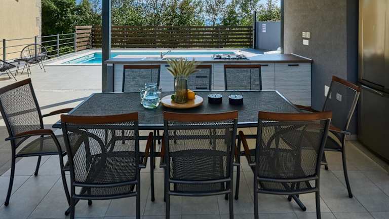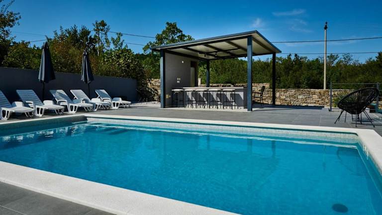 Die Villa Telma in Kostrčani ist der perfekte Ort für einen erholsamen Urlaub mit Familie oder Freunden. Mit einem eigenen Pool, einem wunderschönen Garten und kostenfreien Privatparkplätzen bietet diese Villa alles, was Sie für einen komfortablen Aufenthalt benötigen. Genießen Sie die atemberaubende Bergkulisse und entspannen Sie sich in der ruhigen Umgebung. Die Villa verfügt über 4 Schlafzimmer, ein geräumiges Wohnzimmer und eine voll ausgestattete Küche. Handtücher und Bettwäsche werden gestellt, sodass Sie sich um nichts kümmern müssen. Besuchen Sie die Burg Pazin oder das Stadion Rujevica HNK Rijeka, die beide in der Nähe liegen. Der Flughafen Rijeka ist ebenfalls gut erreichbar.