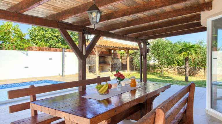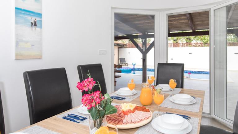 Das klimatisierte Ferienhaus Villa Tereza verfügt über 4 Schlafzimmer, ein geräumiges Wohnzimmer und eine voll ausgestattete Küche mit Kühlschrank und Kaffeemaschine. Es gibt auch 3 Badezimmer mit Dusche. Handtücher und Bettwäsche werden gestellt, so dass Sie sich um nichts kümmern müssen. Genießen Sie Ihren Aufenthalt in diesem komfortablen Ferienhaus.