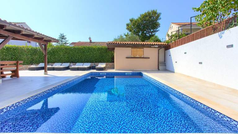 Die Villa Tereza in Malinska bietet Ihnen einen komfortablen Aufenthalt mit Balkon und Zugang zu einer Terrasse. Das Ferienhaus verfügt über 4 Schlafzimmer, eine voll ausgestattete Küche und 3 Badezimmer. Entspannen Sie im Außenpool und erkunden Sie die nahegelegenen Strände und Sehenswürdigkeiten.
