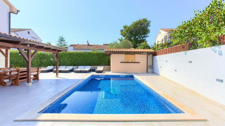 Die Villa Tereza bietet einen Außenpool, in dem Sie sich an warmen Tagen erfrischen können. Nutzen Sie die Gelegenheit, die Strände und Sehenswürdigkeiten in der Umgebung zu erkunden und einen aktiven Urlaub zu verbringen.