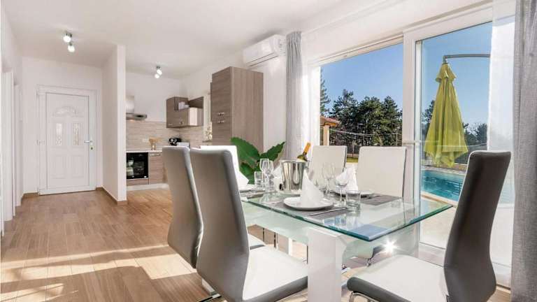 Die Villa verfügt über 4 Schlafzimmer und ein Wohnzimmer. Eine voll ausgestattete Küche ist vorhanden, die mit Kühlschrank und Geschirrspüler ausgestattet ist.