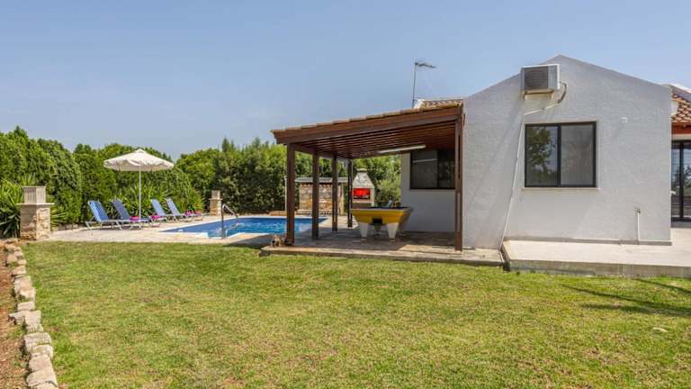 Die Villa verfügt über eine voll ausgestattete Küche, so dass Sie Ihre eigenen Mahlzeiten zubereiten können. Alternativ können Sie auch eines der Restaurants in der Nähe besuchen und die lokale Küche genießen. In Lachi gibt es eine Vielzahl von Restaurants, die eine große Auswahl an Gerichten bieten.