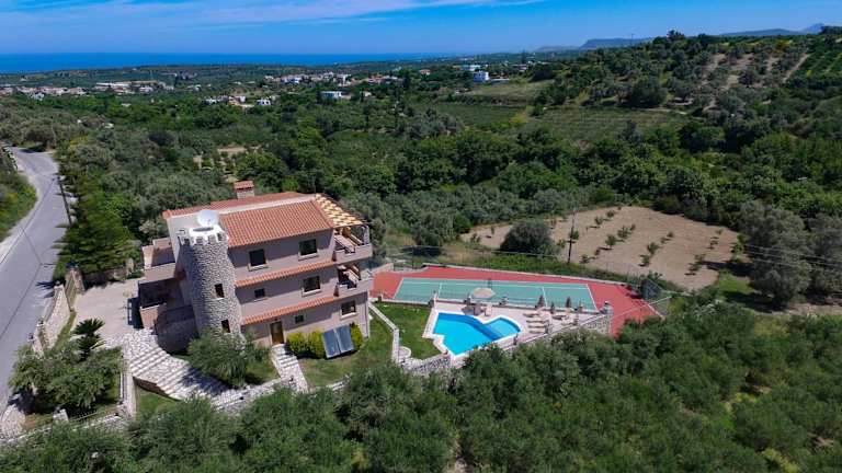 Verbringen Sie Ihren Urlaub in der wunderschönen Villa Tinadora in Agia Triada und genießen Sie den Komfort eines saisonalen Außenpools, eines Fitnesscenters und eines Tennisplatzes. Die klimatisierte Villa bietet kostenfreies WLAN, einen DVD-Player, eine voll ausgestattete Küche, ein geräumiges Wohnzimmer, 4 Schlafzimmer und 4 Badezimmer. Ein Flachbild-Sat-TV sorgt für Unterhaltung. Nutzen Sie auch die Grillmöglichkeiten und erkunden Sie die umliegenden Städte und Strände.