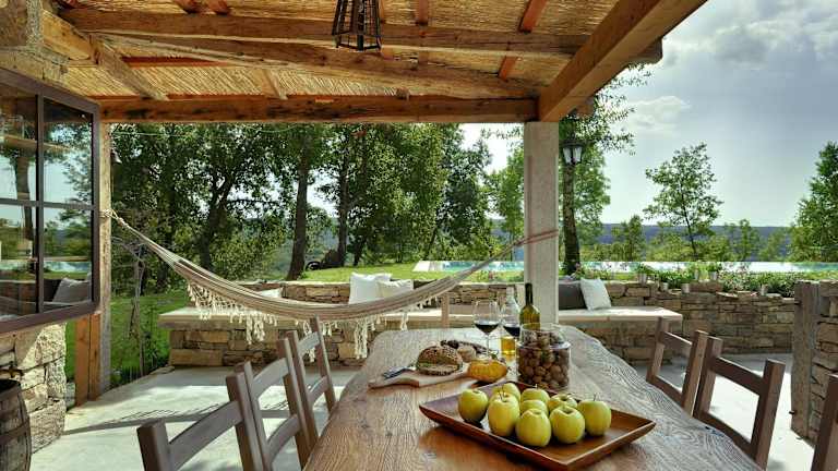Die Villa Torrecorta liegt in Grožnjan und bietet Ihnen eine ruhige und idyllische Lage. Von der Terrasse aus können Sie einen herrlichen Blick auf die umliegenden Berge genießen. Die Umgebung lädt zu Spaziergängen und Wanderungen ein, um die Schönheit der Natur zu entdecken. In der Nähe finden Sie auch historische Städte wie Triest und Portorož, die einen Besuch wert sind. Der Flughafen Pula ist ebenfalls gut erreichbar.