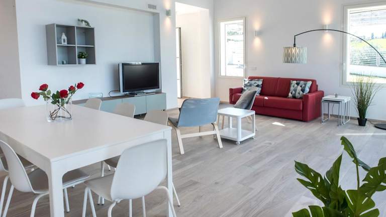 Die Ferienwohnung verfügt über 4 Schlafzimmer und ein Wohnzimmer, das mit einem Flachbild-TV ausgestattet ist. Die gut ausgestattete Küche umfasst einen Kühlschrank und einen Geschirrspüler. Zudem sind 3 Badezimmer mit einem Bidet vorhanden. Handtücher und Bettwäsche werden bereitgestellt.