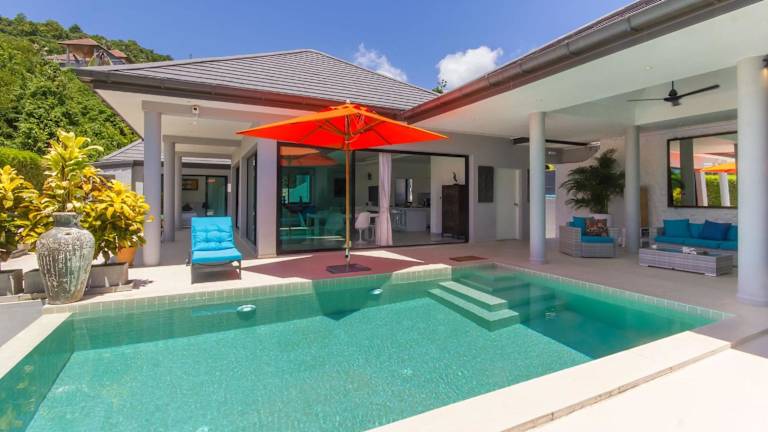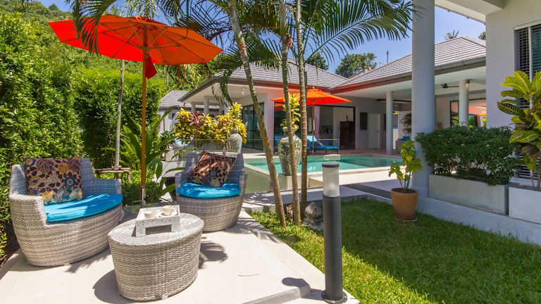 Die Villa Tropical Cocoon in Koh Samui bietet ein exklusives und komfortables Urlaubserlebnis mit einem eigenen Außenpool, einem wunderschönen Garten und einer stilvollen Bar. Genießen Sie den traumhaften Poolblick und profitieren Sie von kostenlosem WLAN und kostenfreien Privatparkplätzen. Die Villa ist modern eingerichtet und verfügt über 3 Schlafzimmer, 3 Badezimmer, Bettwäsche, Handtücher, einen Flachbild-Sat-TV, einen gemütlichen Essbereich, eine voll ausgestattete Küche und eine Terrasse mit atemberaubendem Meerblick. Erkunden Sie die Umgebung mit dem Fahrrad oder lassen Sie sich von der Villa einen Mietwagen organisieren. Das Fischerdorf liegt nur 2,8 km entfernt und der imposante Big Buddha ist in 7,5 km erreichbar. Der internationale Flughafen Ko Samui ist nur 7 km entfernt und bietet eine bequeme Anreisemöglichkeit.