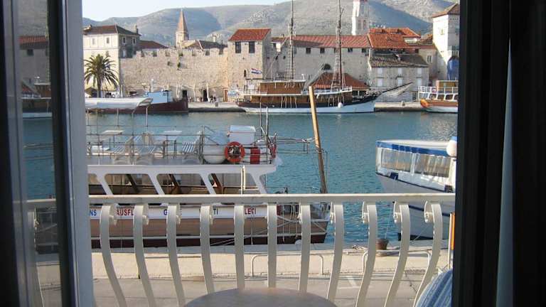 Das Hotel Villa Tudor liegt direkt an der Uferpromenade gegenüber der Altstadt von Trogir. Von hier aus haben Sie einen malerischen Blick auf die historische Stadt und können bequem zu Fuß das Zentrum erreichen. Die Lage ist ideal, um die Sehenswürdigkeiten von Trogir zu erkunden und die Atmosphäre der Stadt zu genießen. Die Insel Čiovo, die über eine Steinbrücke mit Trogir verbunden ist, ist ebenfalls leicht zu erreichen.