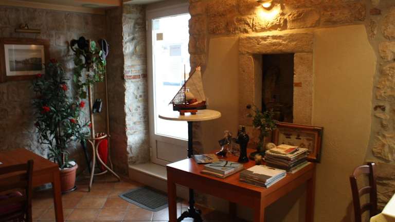 Das Hotel Villa Tudor in Trogir ist ein charmantes altes Steinhaus direkt an der Uferpromenade gegenüber der Altstadt. Hier erwartet Sie eine gelungene Kombination aus historischem Charme und modernem Komfort. Die Zimmer sind stilvoll eingerichtet und bieten Klimaanlage, Flachbild-Sat-TV und WLAN. Von den Zimmern aus haben Sie einen Panoramablick über Trogir. Das historische Zentrum von Trogir erreichen Sie nach nur 2 Minuten zu Fuß über die Steinbrücke zur Insel Čiovo. Das rustikale Restaurant des Hotels serviert Ihnen ein leckeres Frühstück, das Sie auf der einladenden Terrasse genießen können. Kostenlose Parkplätze stehen Ihnen am Hotel zur Verfügung.