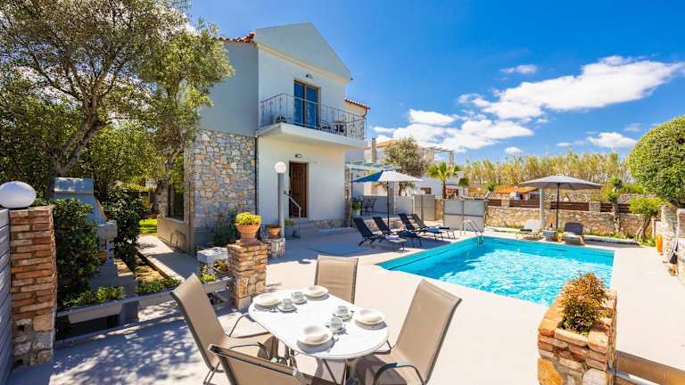 Die Villa Tzina in Platanias ist eine ideale Unterkunft für einen entspannten Urlaub. Mit einem Außenpool und einer Terrasse können Sie die Sonne und die Ruhe genießen. Die klimatisierte Villa verfügt über eine voll ausgestattete Küche und einen Balkon. Hier können Sie Ihre Mahlzeiten zubereiten und den Komfort eines eigenen Zuhauses genießen. Der Grillplatz lädt zu gemütlichen Abenden im Freien ein. Der internationale Flughafen von Chania ist nur 29 km entfernt, was eine bequeme Anreise ermöglicht.