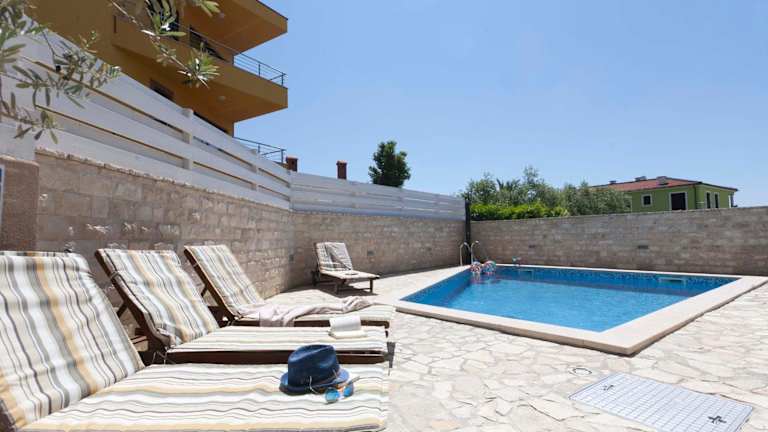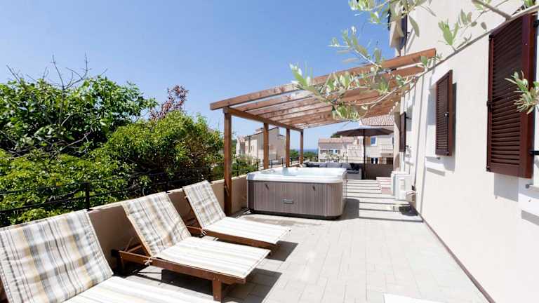 Die Villa UNDINA ist ein luxuriöses Ferienhaus, das Platz für große Gruppen bietet. Zur Ausstattung gehören ein Balkon mit Meer- und Poolblick, ein Außenpool, eine Sauna sowie ein Whirlpool. Das Haus verfügt über einen eigenen Pool, einen Garten mit Grillmöglichkeiten und kostenloses WLAN. Die Unterkunft wird von einem privaten Gastgeber betrieben, wobei spezifische Richtlinien für Feiern und Gästealter gelten.